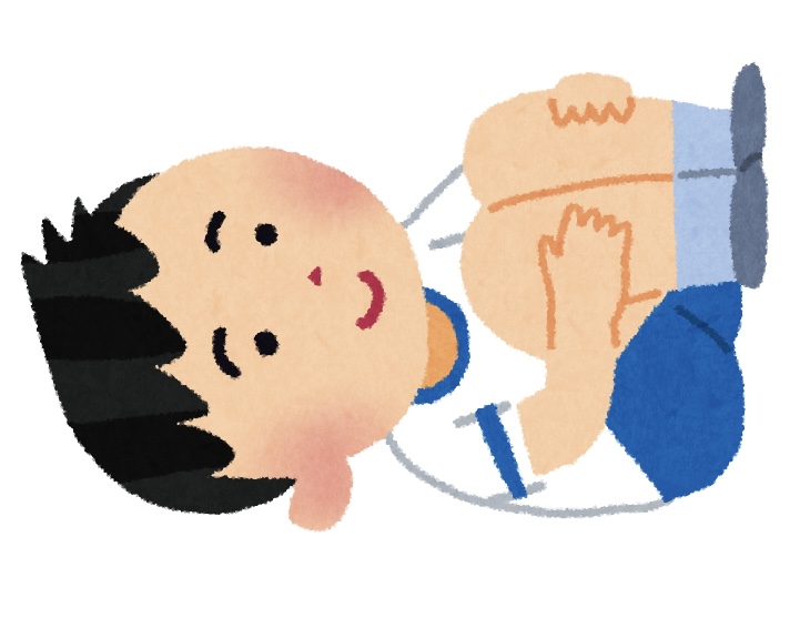 仰向けで寝てもらい、両手で膝を抱えましょう。